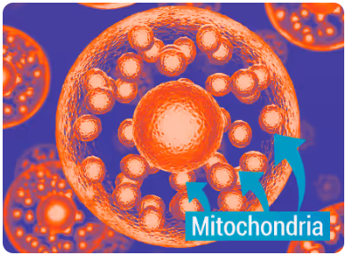 That’s because like little engines, mitochondria are tiny parts found inside every cell in our body that make energy from the food we eat and by burning fat stored in our body. This energy, called ATP, is what our body needs to do everything—from moving our muscles, to our heart beat, to thinking.